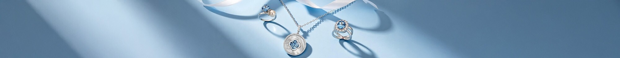 Colliers Griffe Rouge en argent et oxyde de zirconium bleu topaze et blanc