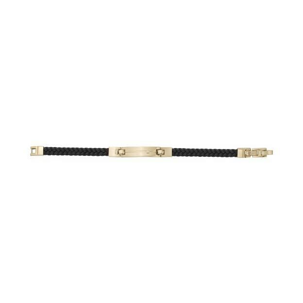 Bracelet Phebus en acier, cuir et diamant 0.015ct